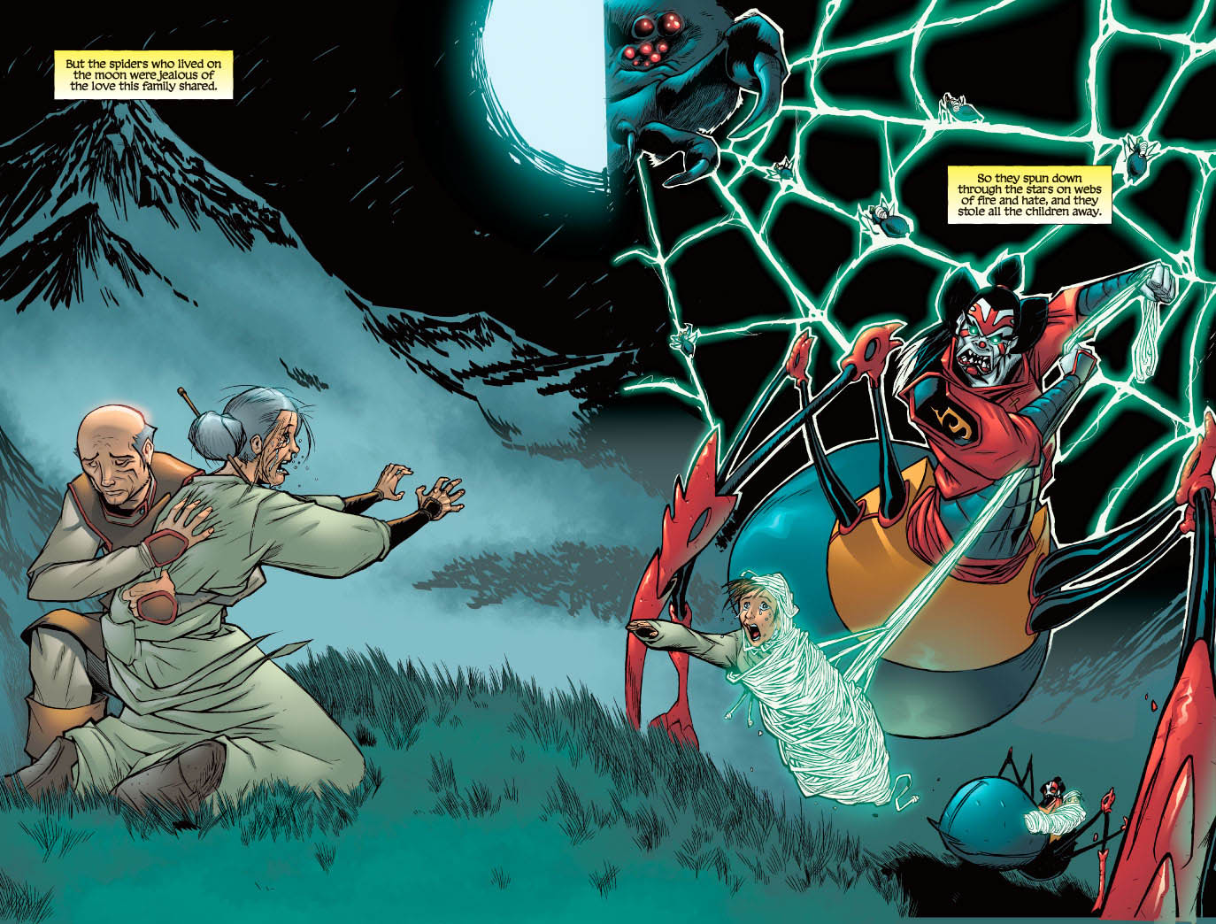 Excerpt from “Momotaro” / “The Peach-Pit Boy” by Aaron Juergens (writer), Drew Moss (artist), Paul Little (color artist), and Jason Arthur (letterer)
